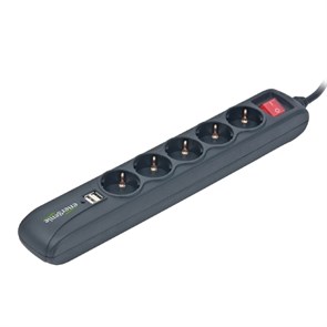 Сетевой удлинитель Energenie SPG5-U-5, 5 розеток, 2 USB (2x500mA), 16A, 1.5м, черный