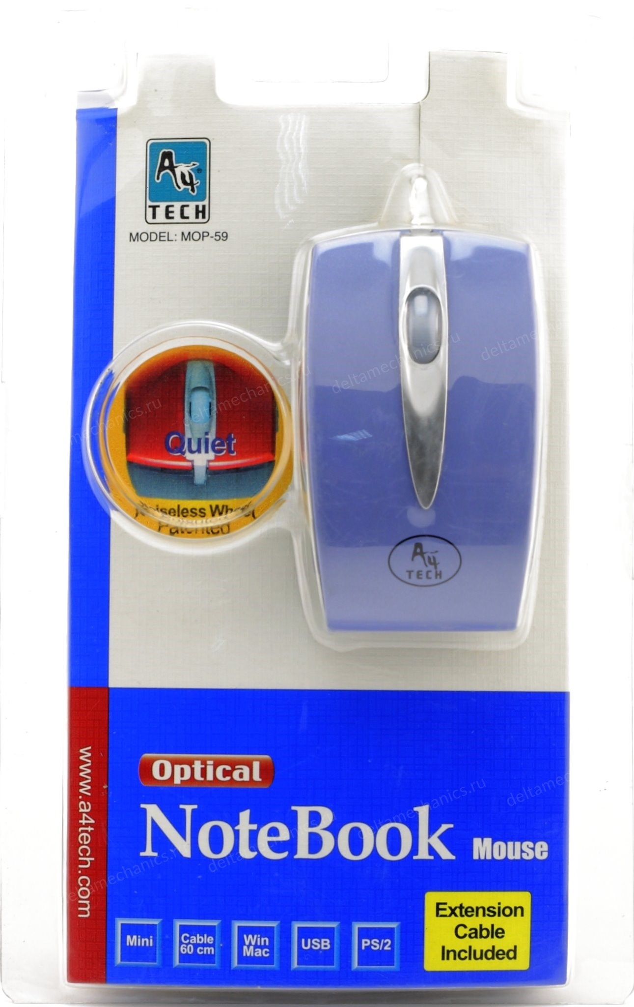 Мышь A4Tech MOP-59-2 Aqua mini, 800dpi, кабель 0.6м+удлинитель 1м, USB+PS/2 переходник