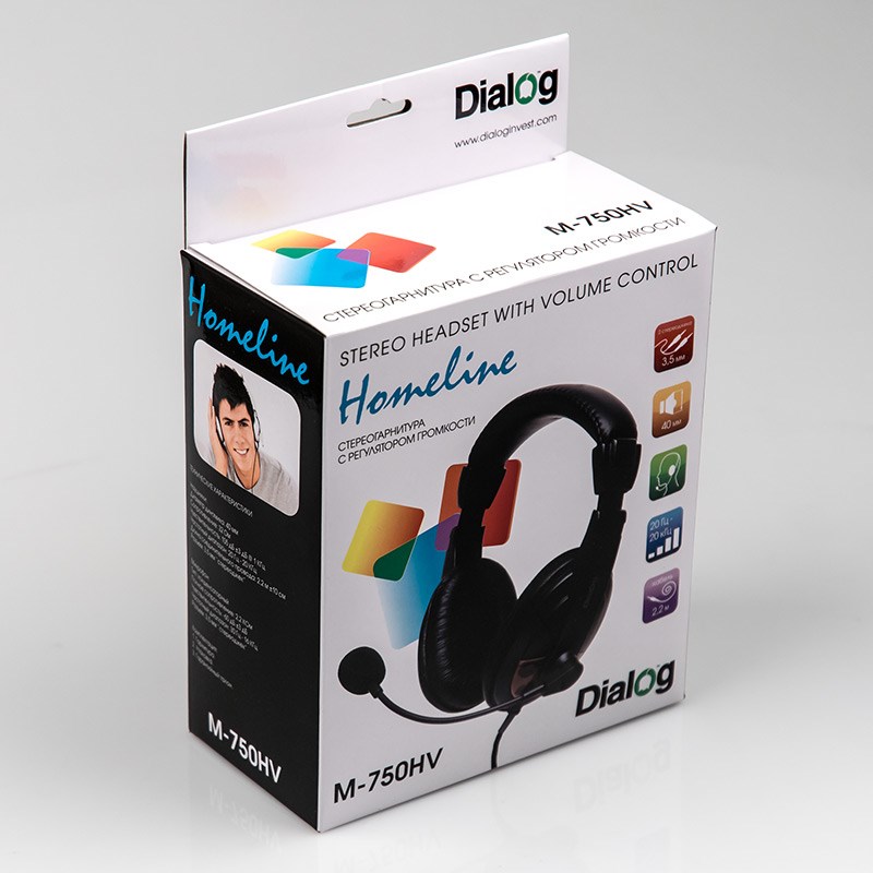 Dialog M-750HV (с регулятором громкости, тканевая оплетка, D=40мм, 32Ом, -60 дБ мик., 2 * 3.5 мм, шнур 2.2 м)