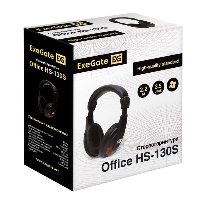 ExeGate Office HS-130S (2x3.5мм, динамик 40мм, кабель 2.2м, рег. громкости)