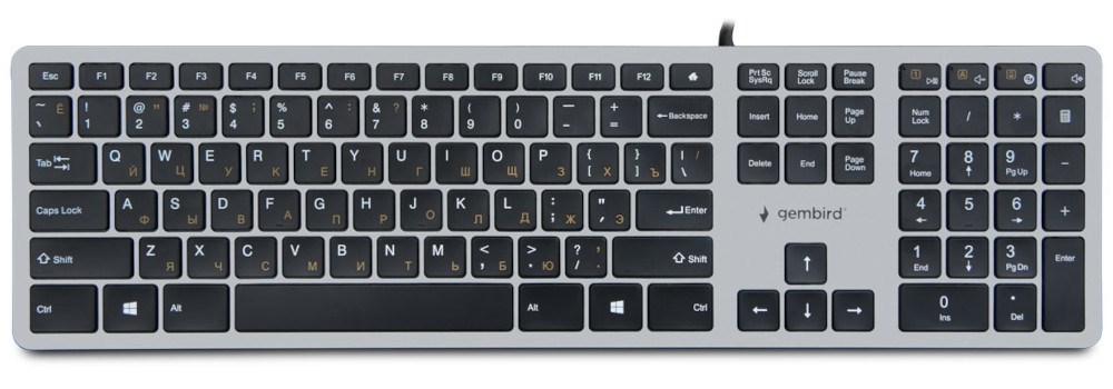 Клавиатура Gembird KB-8420, серебристая, 109кл., с ножничным механизмом, USB, кабель 1.5 м