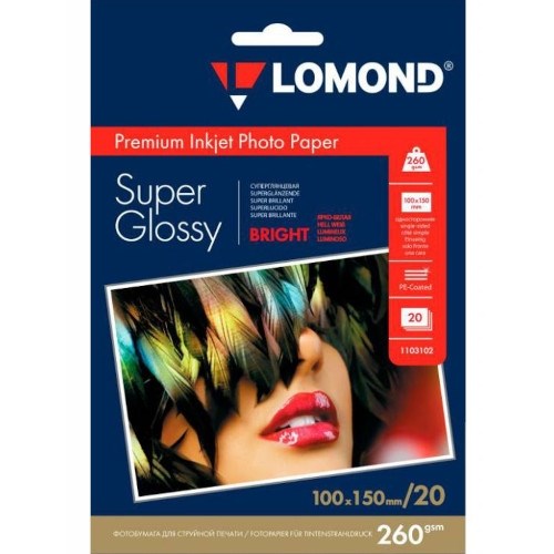 Бумага Lomond A6 10х15 см, Глянцевая, 260г/м2 20л. "Супер Глянцевая" 2400dpi (1103102)