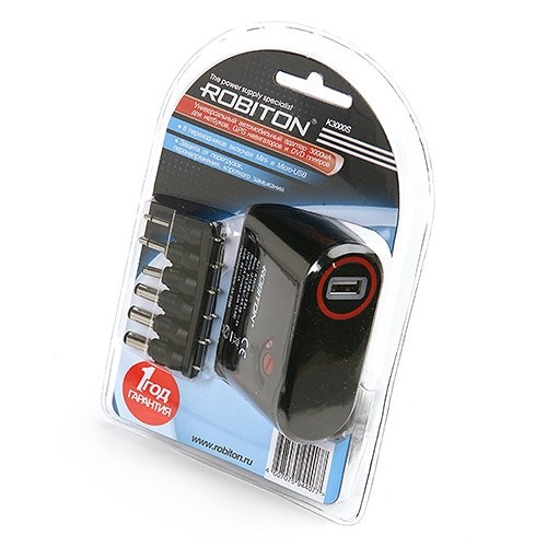 Зарядное устройство а/м 12V --> 3-12V Robiton K3000S 3000мА, универс., 8раз., +USB 5V