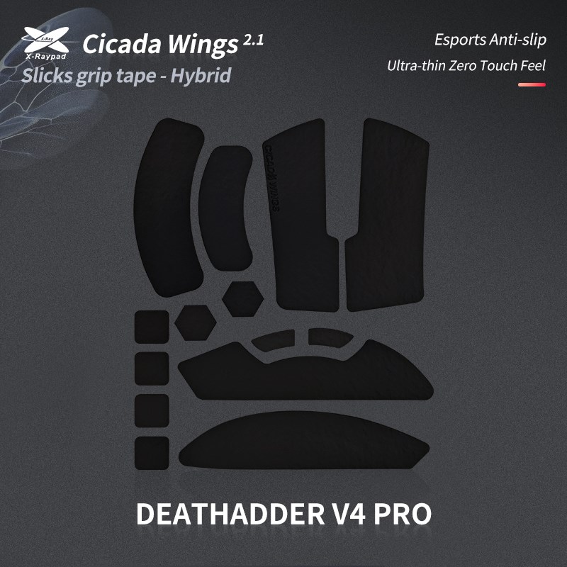 Противоскользящие наклейки на мышь X-raypad Cicada Wings V2 для Razer DeathAdder V4 Pro, чёрные